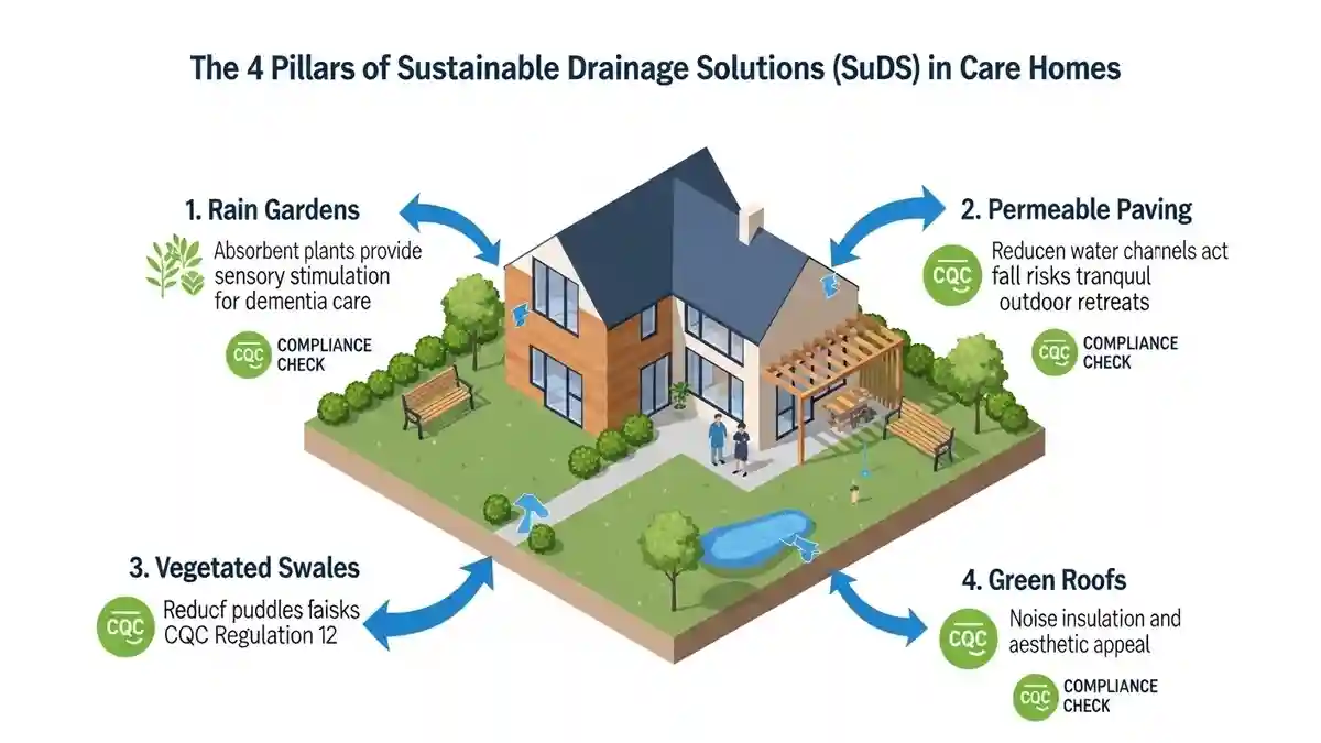 The future of sustainable drainage solutions CQC care home design is the integration of SuDS (Sustainable Drainage Systems). In Tring, Policy EN18 of the Local Plan encourages SuDS to manage surface water runoff, which often plagues the surrounding area.